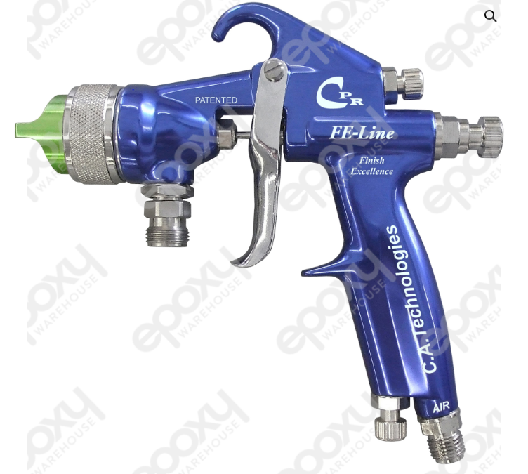 The CPR-FE (CAT Pressure Reduced – Finish Excellence) spray guns are the lightweight and ergonomically designed versions of the CPR which combine the transfer efficiency of HVLP with the speed and finish quality of conventional air spray. All feature a stainless steel fluid passage. The nozzle requires 11 cfm at 29 PSI recommended inlet pressure.